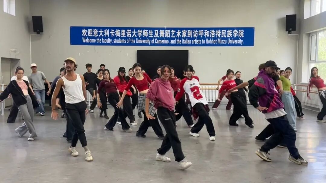 上午9時,活動在音樂學院舞蹈教室正式拉開帷幕。我校團委大學生藝術(shù)團和街舞社團的27名學生共同帶來了精彩的演出。其中,大學生藝術(shù)團帶來的民族舞《四海歡歌》尤為亮眼——舞者以極具張力的肢體語言,將民族舞蹈的奔放熱情展現(xiàn)得淋漓盡致,既彰顯出蒙古族傳統(tǒng)藝術(shù)的深厚底蘊,更成為傳播中華文化的生動載體,贏得了意大利等國師生的一致好評。
