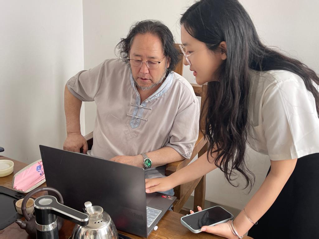 2023年7月2日,公共管理學院院長哈斯同力嘎博士帶領“智記民歌”創新創業團隊以及“社會調查”課學生赴大漠文創園參觀學習。內蒙古自治區藝術研究院(內蒙古自治區非物質文化遺產保護中心)娜布其全程陪同指導本次學習活動。活動第一站在區級非物質文化遺產傳承人朝魯的工作室進行,“智記民歌”項目成員們向朝魯同志進行介紹項目,朝魯同志對學生團隊進行耐心的指導和親切的鼓勵。