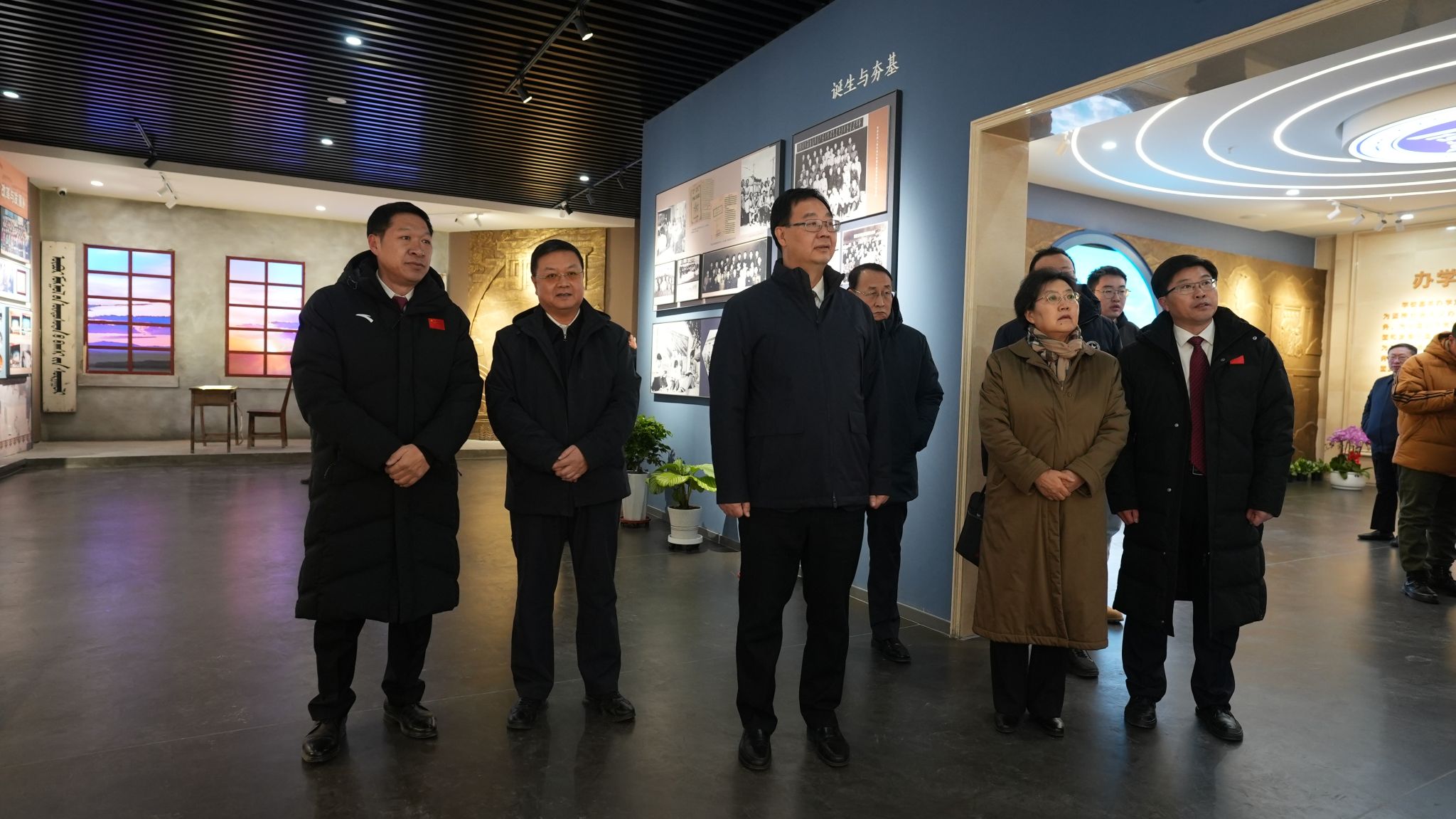 大會開始前,自治區領導包獻華、楊劼以及伏來旺、娜仁、李頡等嘉賓在劉九萬、韓偉新的陪同下參觀了校史館。