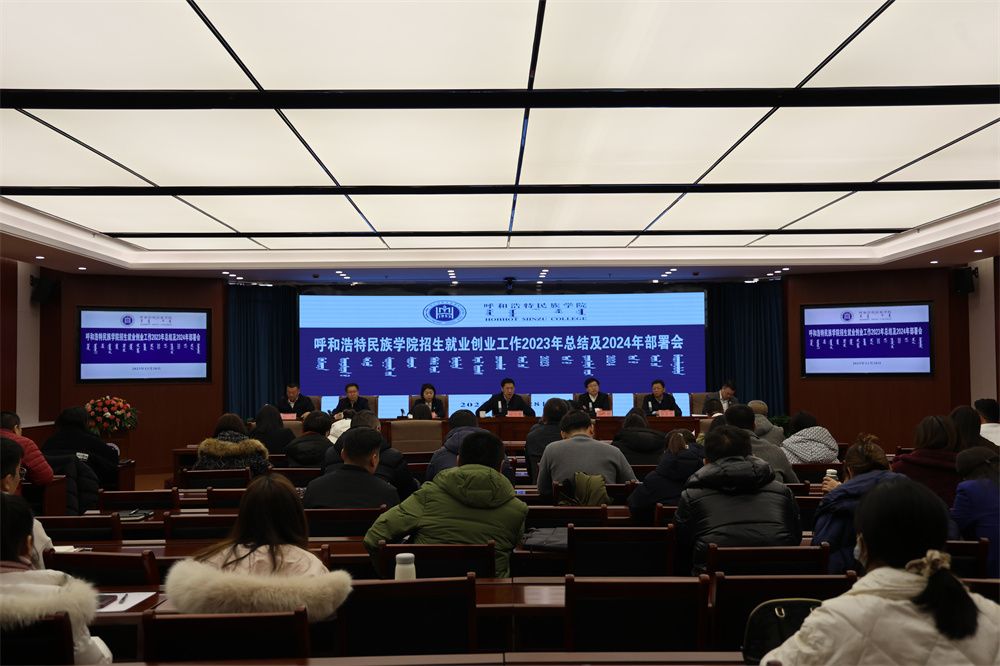 額爾敦布和總結了2023年招生就業創業工作開展情況,分析研判了當前就業形勢及學校招生就業創業工作中存在的問題,并對2024年工作進行安排部署,一是各部門、學院要按照“立足早、工作實、謀劃全、盯的緊”的要求,認真貫徹落實2024屆畢業生就業創業工作;二是要全面發揮政策性崗位吸納就業作用,構建高質量就業服務體系,強化困難群體幫扶,提高人才培養質量;三是要加強就業監測和評價反饋,強化組織領導,全力推動學校2024屆畢業生高質量充分就業。