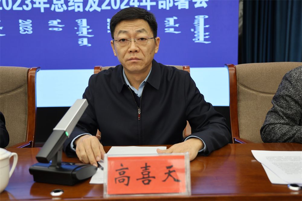 高喜天宣讀《呼和浩特民族學院關于表彰獎勵2023年就業創業工作先進集體的決定》