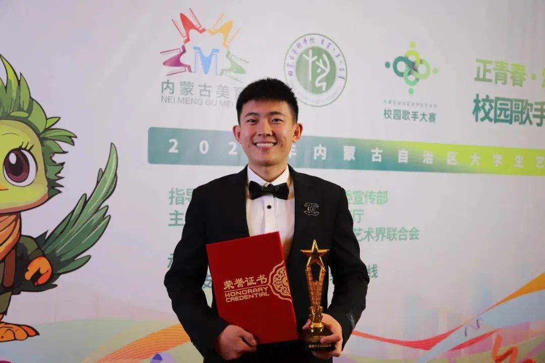 近日,由內蒙古自治區黨委宣傳部指導,內蒙古自治區教育廳、內蒙古自治區文學藝術界聯合會聯合主辦的2023年全區大學生藝術節“正青春·頌中華”校園歌手大賽在內蒙古藝術學院舉辦。我校楊雨浩同學榮獲全區校園歌手大賽業余組“高校十大校園歌手”。