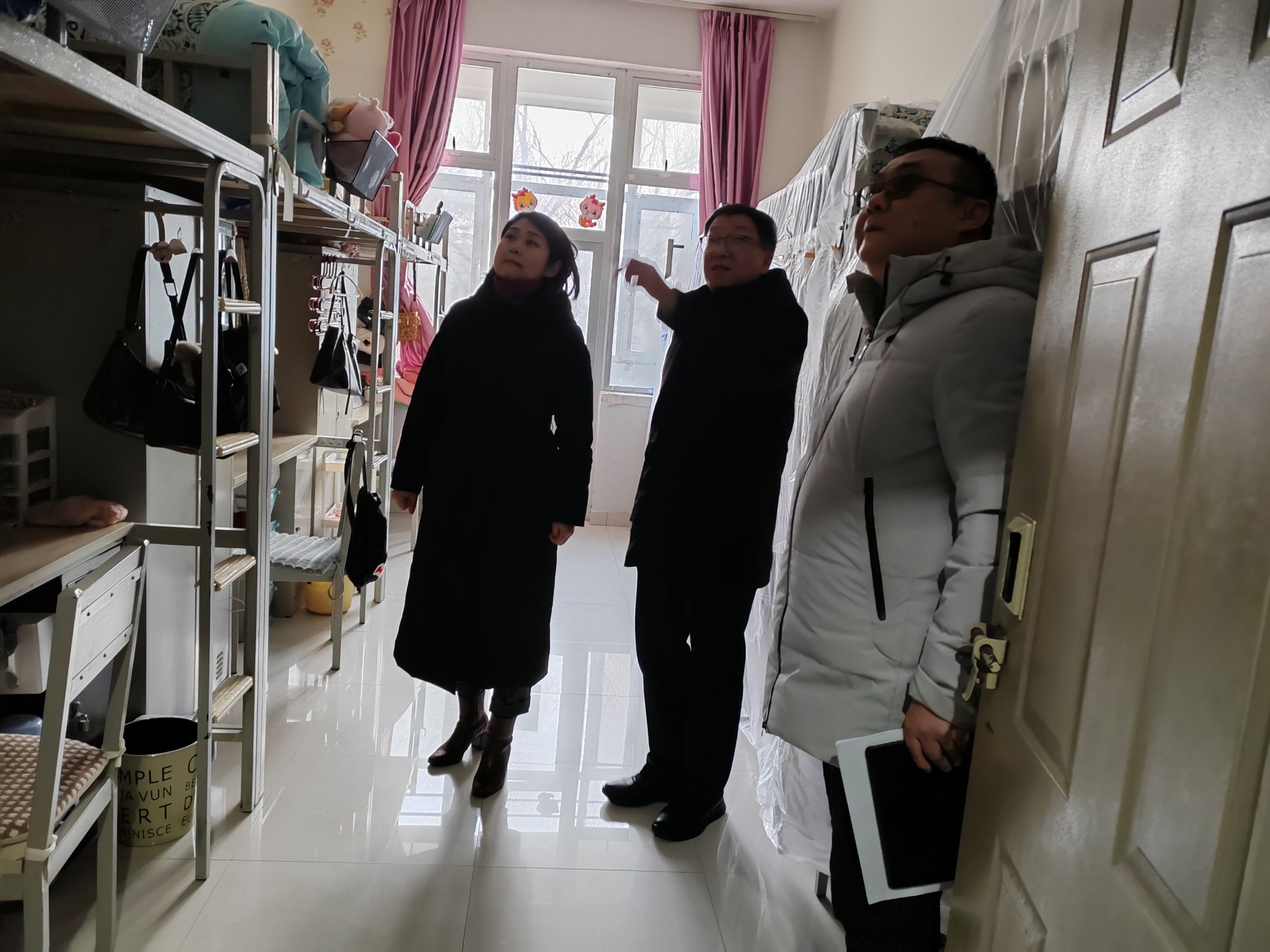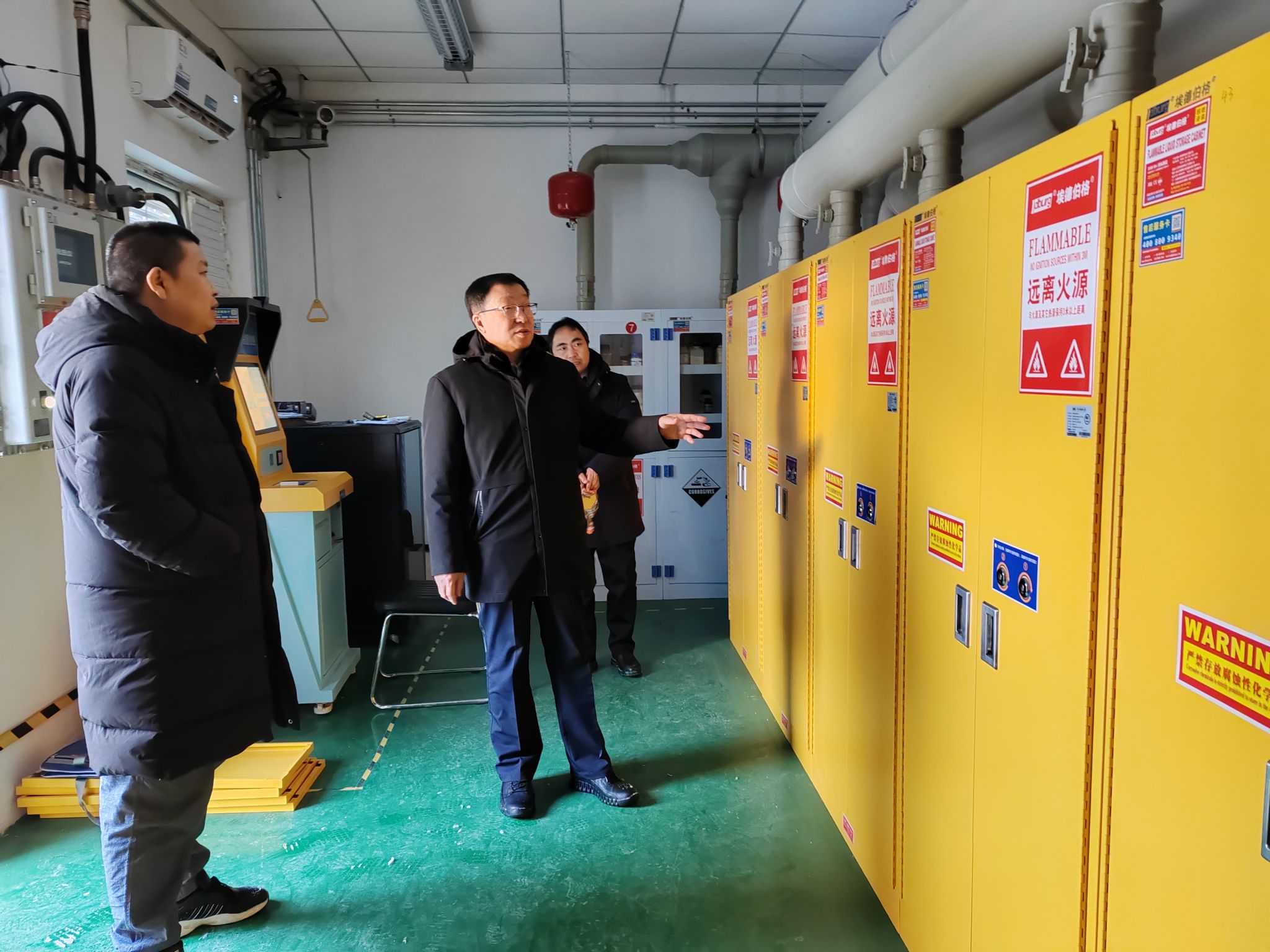 會后,格根哈斯、劉瑞鴻到?;窌捍媸壹八奚針堑戎攸c區域進行細致檢查,針對檢查中發現的問題,逐一明確整改措施和責任人,并要求限期整改完成。宣傳部、保衛處、后勤管理處、學生工作部、化學與環境學院相關負責同志陪同。
