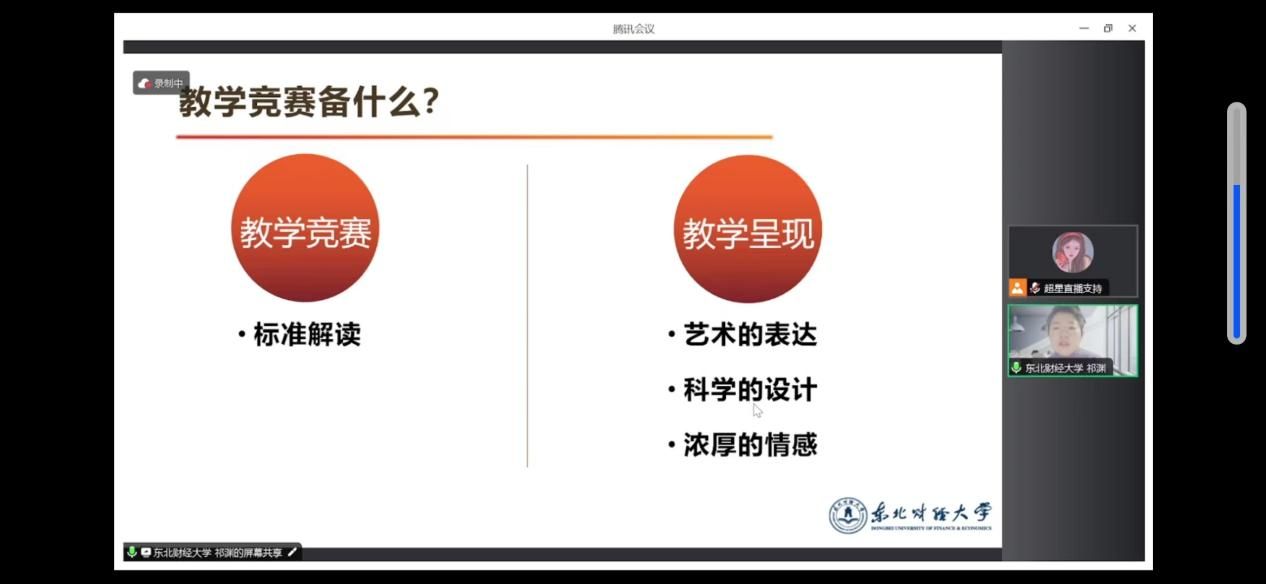 本次培訓會特邀全國高校教學創新大賽一等獎獲獎教師東北財經大學祁淵教授、河北工業大學汪大云副教授作報告。兩位專家分別以《如何在教學競賽中脫穎而出》《立足人才培養推進教學創新》為題,結合親身參賽經歷,圍繞備賽目標、理念創新、內容創新、方法創新、評價創新、申報材料準備等方面解讀教學競賽的底層邏輯,為大家進行詳細而具體的分享和指導,解決了教師備賽過程中遇到的困惑和問題。
