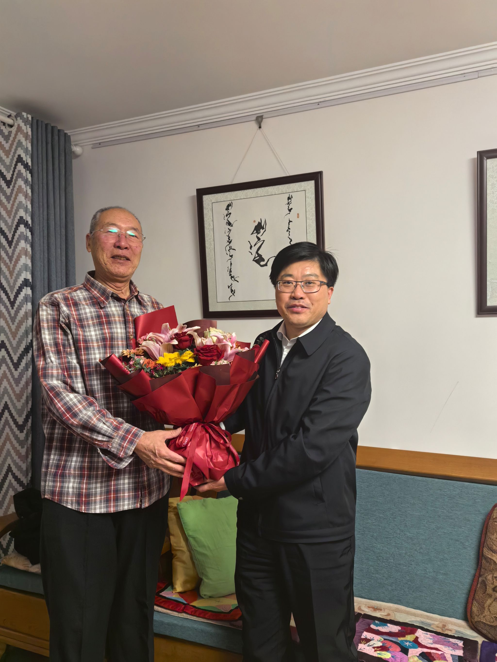 慰問中,劉九萬、韓偉新等領導代表學校對各位老領導、老干部、老教師長期以來為學校發展作出的貢獻表示衷心感謝,向他們介紹了學校以鑄牢中華民族共同體意識為主線開展人才培養、民族團結進步教育、學科專業調整、人才隊伍建設及70周年校慶等相關情況,詳細了解了他們的生活、身體狀況,并聽取他們對學校各項事業發展的意見和建議。