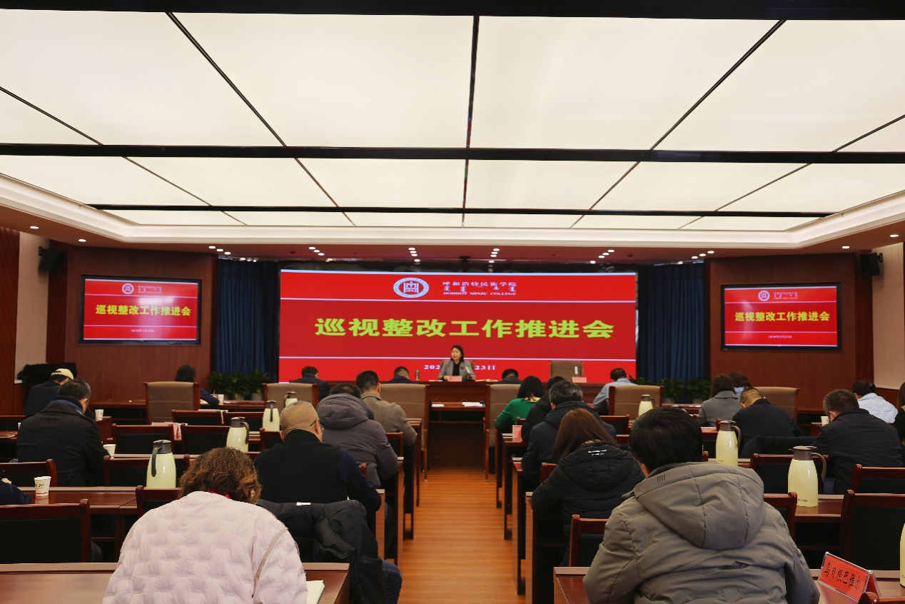 2月23日,學(xué)校召開巡視整改工作推進(jìn)會。校黨委副書記格根哈斯主持會議并講話。
