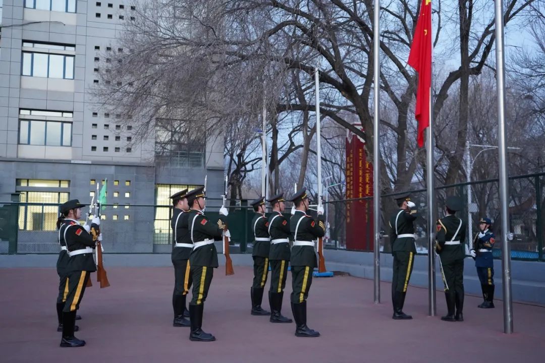 2月26日7時,學校在南操場舉行了莊嚴的“同升國旗 同唱國歌”主題升國旗儀式。