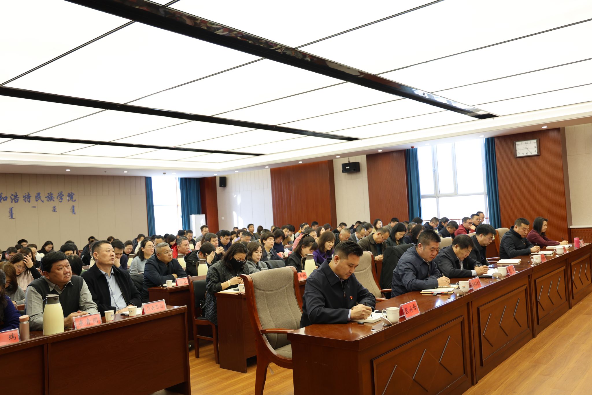 劉九萬指出,2024年是全面貫徹落實黨的二十大精神關(guān)鍵之年,也是實施“十四五”規(guī)劃承上啟下的關(guān)鍵之年。當前學(xué)校正處于發(fā)展轉(zhuǎn)型的關(guān)鍵期,高質(zhì)量發(fā)展是壓倒一切的硬任務(wù)。他從嚴抓政治建設(shè),在筑牢對黨忠誠上下功夫;嚴抓思想建設(shè),在思想引領(lǐng)上下功夫;嚴抓組織建設(shè),在提升政治功能上下功夫;嚴抓干部和人才建設(shè),在提升素質(zhì)上下功夫;嚴抓全面從嚴治黨,在優(yōu)化政治生態(tài)上下功夫;嚴抓主線,在深化鑄牢中華民族共同體意識上下功夫;嚴抓黨建帶群建,在共筑同心圓上下功夫;嚴抓安全穩(wěn)定,在建設(shè)平安校園上下功夫等方面對2024年黨建和全面從嚴治黨重點工作進行了部署。