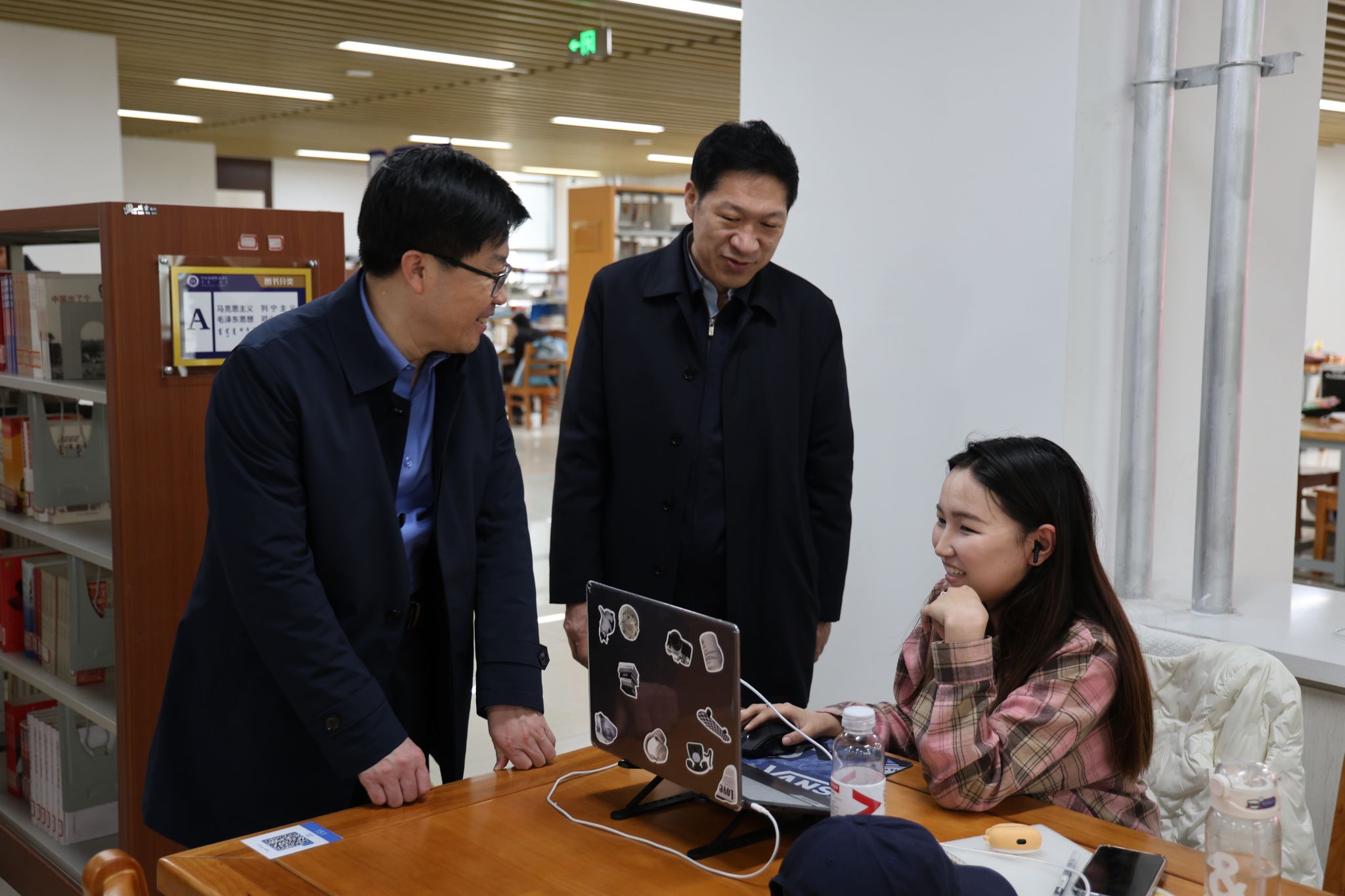 為進(jìn)一步落實(shí)好立德樹人根本任務(wù),全面抓好校園安全穩(wěn)定工作,3月18日下午,校黨委書記劉九萬(wàn),黨委副書記、校長(zhǎng)韓偉新,黨委委員、副校長(zhǎng)劉瑞鴻一行深入圖書館、工會(huì)之家、老干部活動(dòng)中心等地實(shí)地走訪調(diào)研,與相關(guān)人員進(jìn)行深入交流,全面了解學(xué)生學(xué)習(xí)讀書、教職工文化生活和離退休人員娛樂活動(dòng)情況,檢查指導(dǎo)圖書館、工會(huì)、離退休人員工作處開展服務(wù)保障工作情況。