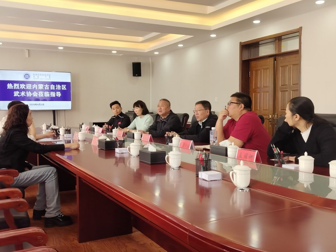 韓偉新簡要介紹了學校發展歷程、特色專業設置以及在民族傳統體育項目方面近年來所取得的成績,希望自治區武術協會一如既往的支持,并給予專業指導,推動學校傳統武術專業高質量發展。