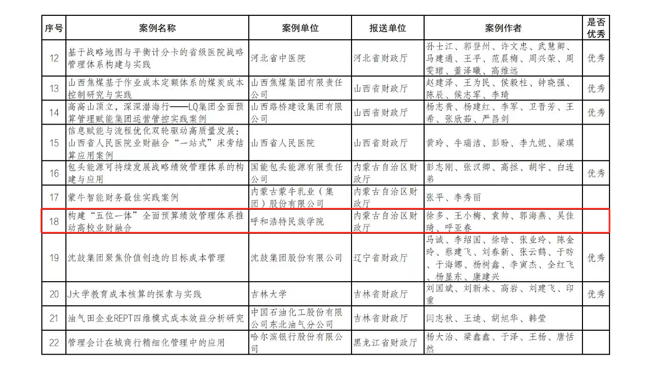 4月11日,財(cái)政部會(huì)計(jì)司公布2023年度優(yōu)秀管理會(huì)計(jì)案例征集和遴選結(jié)果,我校財(cái)務(wù)處副處長(zhǎng)徐多主持撰寫的案例《構(gòu)建“五位一體”全面預(yù)算績(jī)效管理體系推動(dòng)高校業(yè)財(cái)融合》成功入選。此次內(nèi)蒙古自治區(qū)共入選3篇案例,我校是唯一入選的區(qū)直高校。