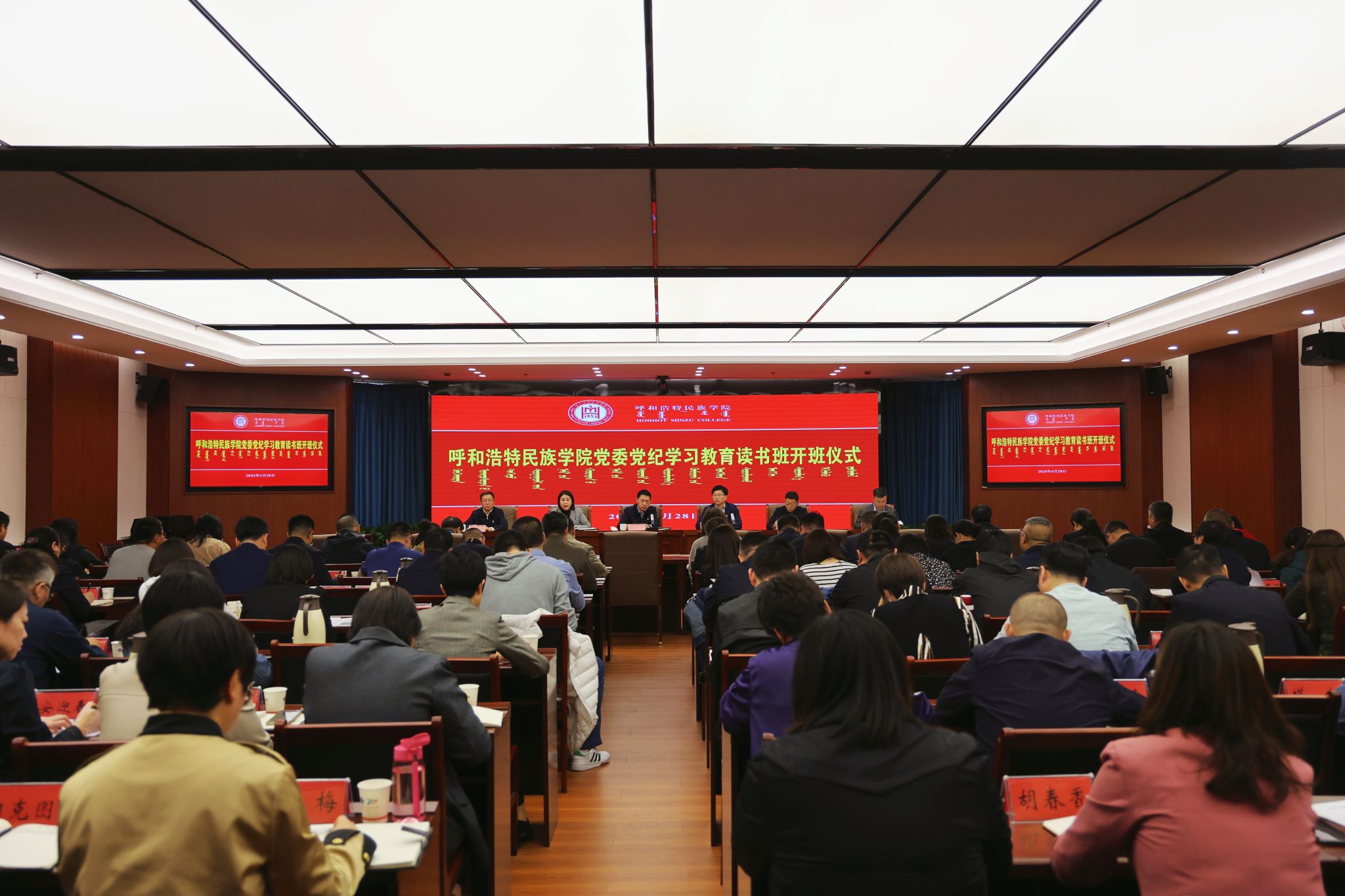 4月28日,學校黨紀學習教育專題讀書班開班式在綜合樓12樓舉行。校黨委書記劉九萬出席會議并講話,黨委副書記、校長韓偉新主持會議。校領導、黨委委員、紀委委員、副處級以上干部參加會議。