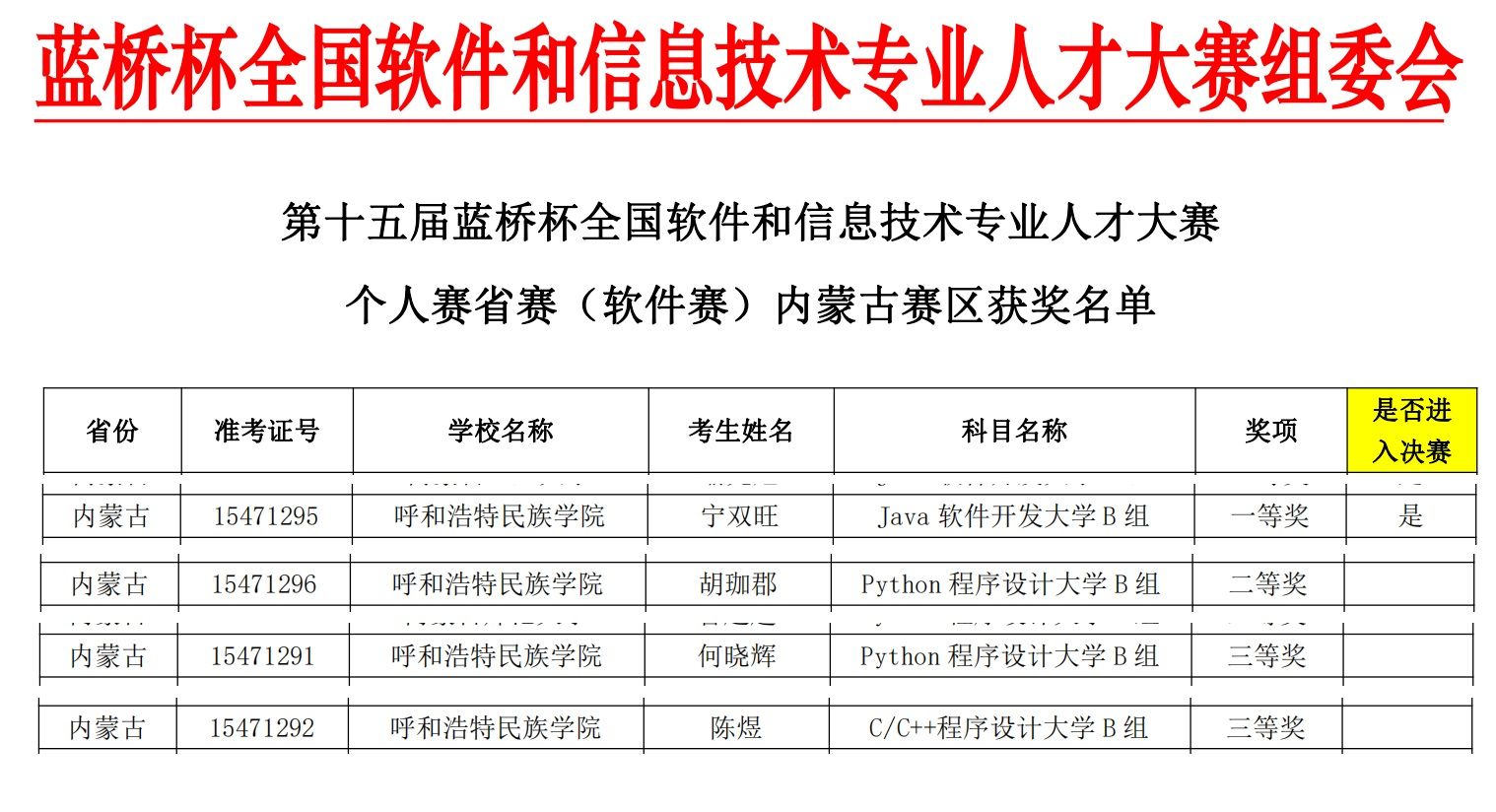 本屆大賽分為個(gè)人賽和團(tuán)隊(duì)賽兩大項(xiàng),我校選手參加了軟件類個(gè)人賽,其中計(jì)算機(jī)科學(xué)學(xué)院的寧雙旺同學(xué)榮獲Java軟件開發(fā)組一等獎(jiǎng),胡珈郡同學(xué)榮獲Python程序設(shè)計(jì)組二等獎(jiǎng),陳煜同學(xué)榮獲C/C++程序設(shè)計(jì)組三等獎(jiǎng),何曉輝同學(xué)榮獲Python程序設(shè)計(jì)組三等獎(jiǎng)的佳績(jī)。寧雙旺同學(xué)將代表學(xué)校參加第十五屆“藍(lán)橋杯”全國(guó)軟件和信息技術(shù)專業(yè)人才大賽——個(gè)人賽國(guó)賽(軟件類)。