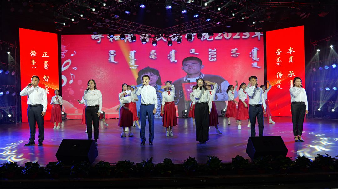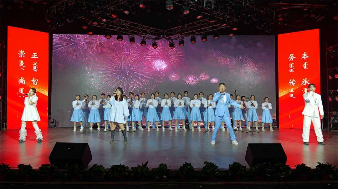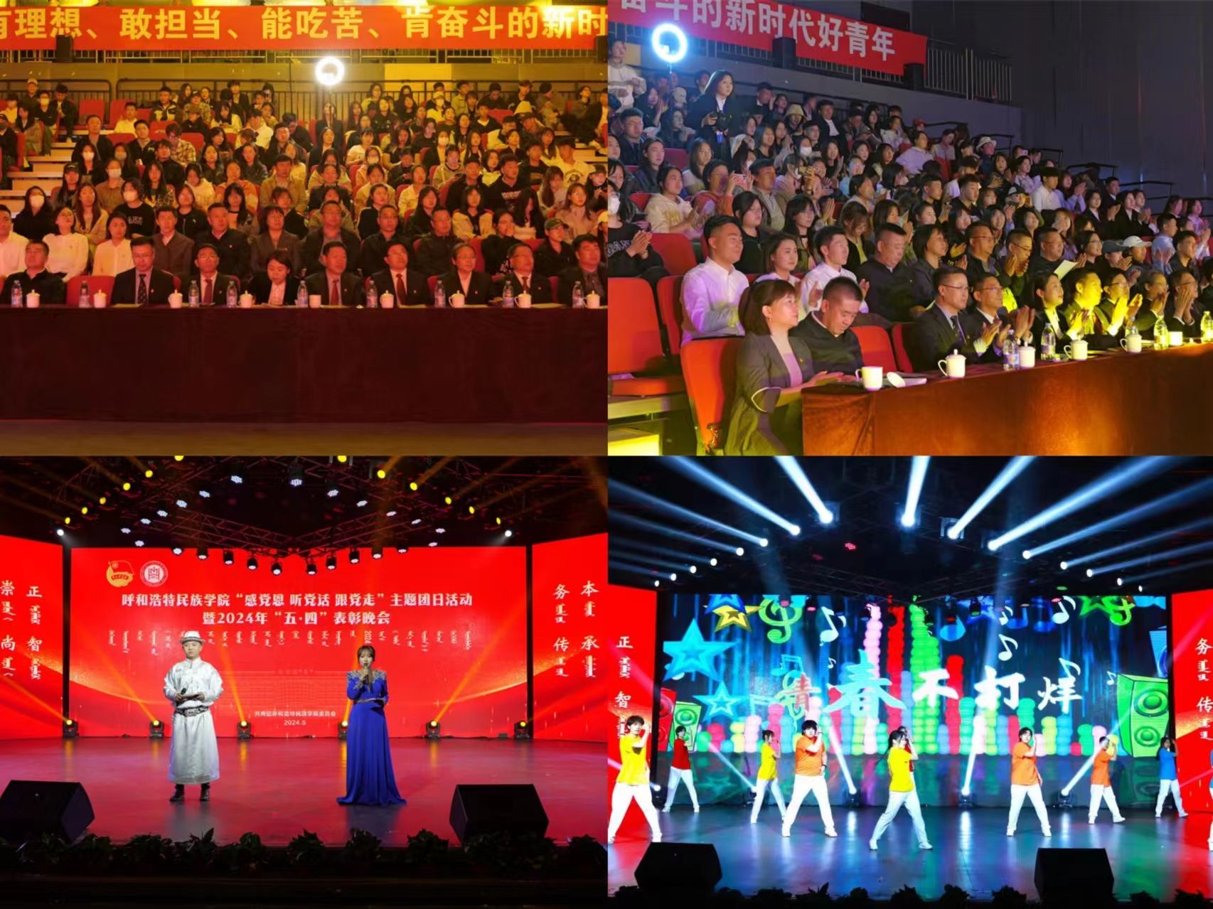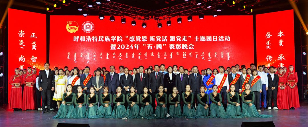 4月29日晚,我?!案悬h恩 聽黨話 跟黨走”主題團日活動暨2024年“五·四”表彰晚會順利舉行。校黨委書記劉九萬,黨委副書記、校長韓偉新,黨委副書記格根哈斯,黨委委員、紀委書記、監察專員王冬梅,黨委委員、副校長高喜天,黨委委員、副校長劉瑞鴻,黨委委員、副校長額爾敦布和出席并頒獎。各部門、各學院負責人,全體共青團干部,獲獎師生代表觀看了晚會。整場晚會在微信視頻號進行直播,3500余人觀看了直播。