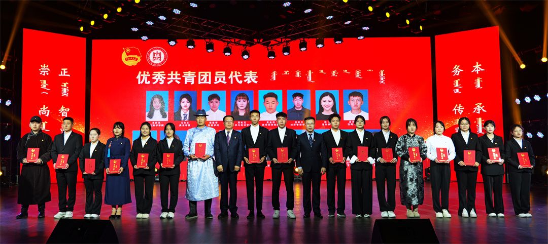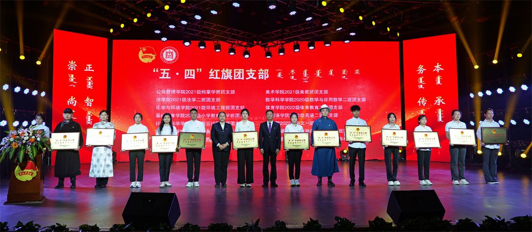 團委書記蘇倫高娃宣讀了2023—2024學年度“五·四”先進集體及先進個人的表彰決定。授予法學院團總支等 6個學院“五·四”紅旗團總支 ,授予外國語學院2022級英語二班團支部等 14個團支部“五·四”紅旗團支部,烏依勒斯等4名同志獲“優秀共青團干部”榮譽稱號,趙蕊等 170名同學獲 “優秀共青團員”榮譽稱號。