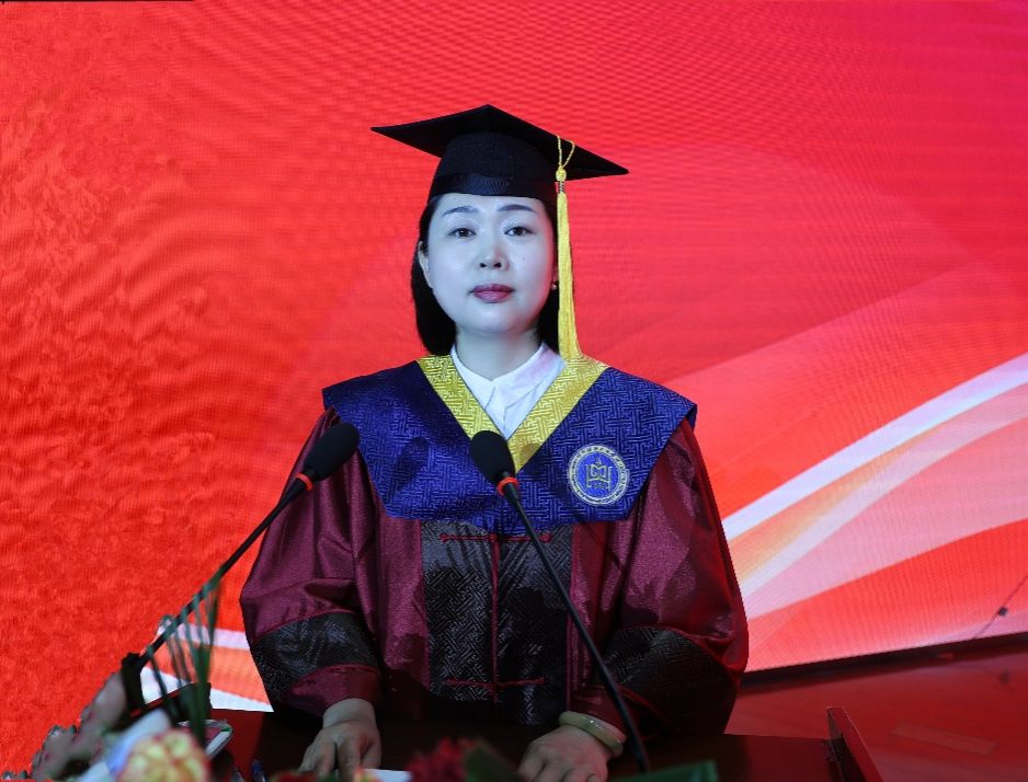 在題為《愿一切美好都會與你同行》的畢業致辭中,校長韓偉新深情回顧了2024屆畢業生與母校一起度過的不平凡青春歲月和不一般大學時光。他表示,這四年,我們一起見證歷史,一個個關鍵歷史節點,一樁樁重大歷史事件,我們不是旁觀者,我們是親歷者、是見證者、是創造者。他勉勵大家,要守牢立身之本,做愛國奉獻的呼民院人;要鑄牢精神之魂,做團結進步的呼民院人;要打牢成事之基,做艱苦奮斗的呼民院人。他希望,畢業生繼續弘揚一往無前的蒙古馬精神,矢志奮斗,自覺做能吃苦、肯奮斗的新時代青年,在不斷磨礪中積累自信,在敢闖敢拼中練就真才實干,努力成為堪當民族復興大任的時代新人。