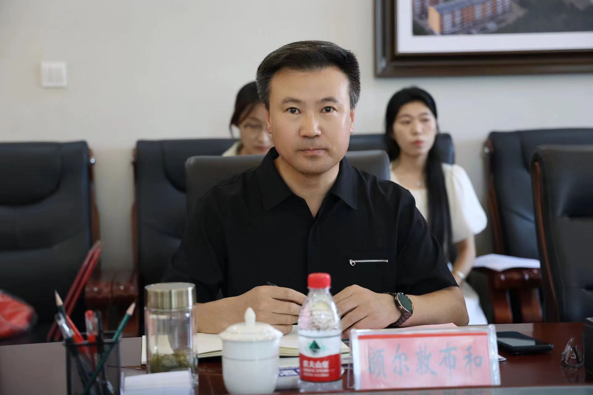 校黨委書記劉九萬會見了東勝區委常委、組織部部長劉春光一行,雙方就發揮各自優勢,全面加強務實合作,為進一步推進人才建設、鑄牢中華民族共同體意識等方面進行深入交流。