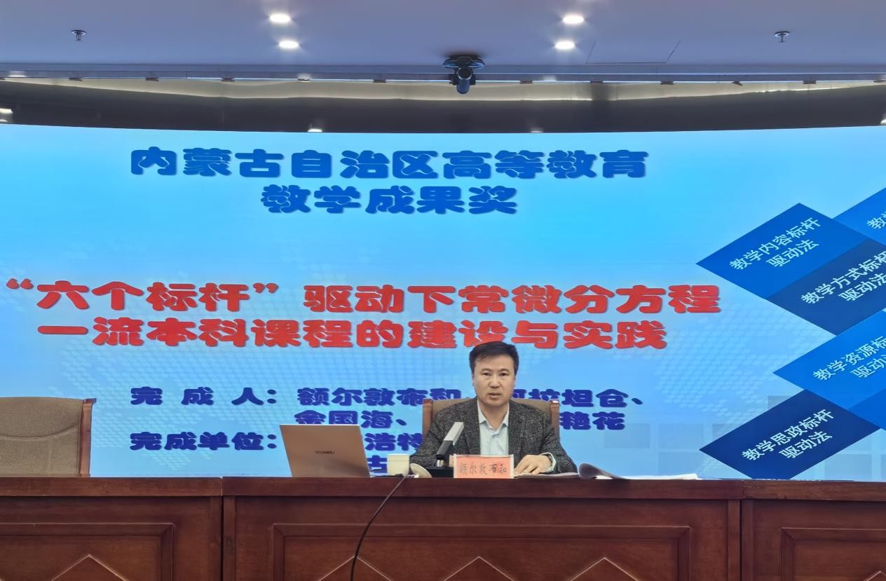 最后,額爾敦布和結合我校數學團隊申報獲得教學成果獎的經驗,強調了成果凝練、填報材料的注意事項,分析了高等教育教學成果獎之于學校發展、之于專業建設和師資建設水平提升所產生的積極作用,動員大家提前謀劃、積極申報2024年度校級及自治區級教學成果獎。