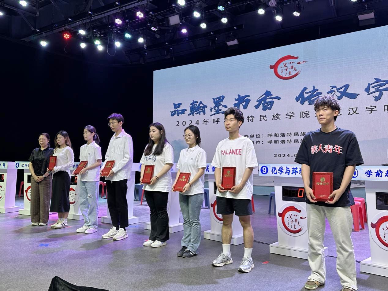 比賽設(shè)置“小試牛刀”“點字成詩”“字正腔圓”“眼疾手快”“狹路相逢”等環(huán)節(jié)。經(jīng)過兩個多小時的激烈角逐,公共管理學(xué)院奪得團(tuán)體賽一等獎,文學(xué)院、經(jīng)濟(jì)管理學(xué)院獲得二等獎,馬克思主義學(xué)院、數(shù)學(xué)科學(xué)學(xué)院、外國語學(xué)院分別獲三等獎。個人賽中,文學(xué)院馮馨丹摘得桂冠,周宇潔、鄭楠、王藝潔獲亞軍,趙玉麗、趙書翌、歐新琴、王雪同學(xué)獲季軍。包冬梅、寶連、樊寒偉、李小鵬、雷旭平、朝格滿都拉六位老師榮獲優(yōu)秀指導(dǎo)教師獎。與會領(lǐng)導(dǎo)和評委為獲獎團(tuán)體和個人頒獎。