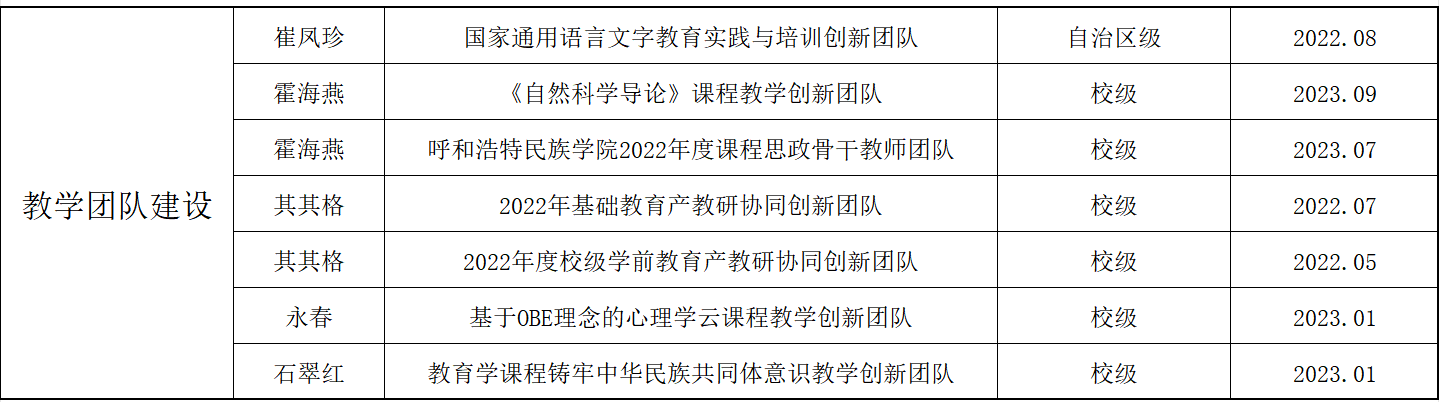 2019年教育學一級學科獲批國家民委重點建設學科;2020年小學教育專業獲批自治區級一流本科專業;2022年學前教育專業獲批國家級一流本科專業建設點;2024年獲批教育碩士點建設單位;2025年獲批1門國家級一流課程和2門自治區一流課程;